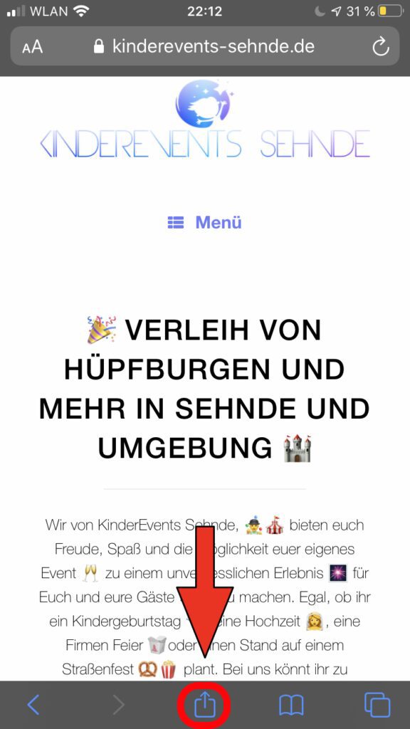 Öffnet in Safari unsere Website, um Sie eurem Homescreen hinzufügen. Es ist sinnvoll, die unsere Startseite der Website zu öffnen und keine Unterseite. Sonst wird bei jedem Tippen auf das erstellte App-Icon die jeweilige Unterseite geöffnet.